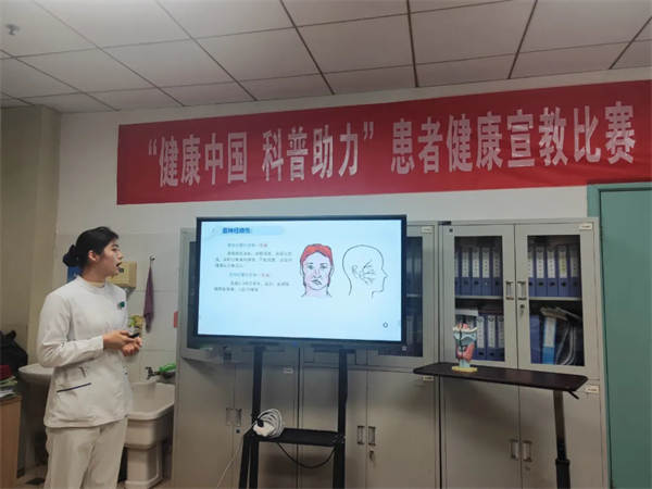 耳鼻喉神經外科護士長盧紅芳介紹了本次活動目的、流程,選手以耳鼻喉、神經外科基礎解剖為宣講主題,以對患者及家屬進行科普教育為形式,進行現場6分鐘的展示。